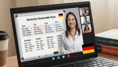 Acesso a curso online de alemão gratuito com nível iniciante, intermediário e avançado com acesso a material didático e vídeo aulas.